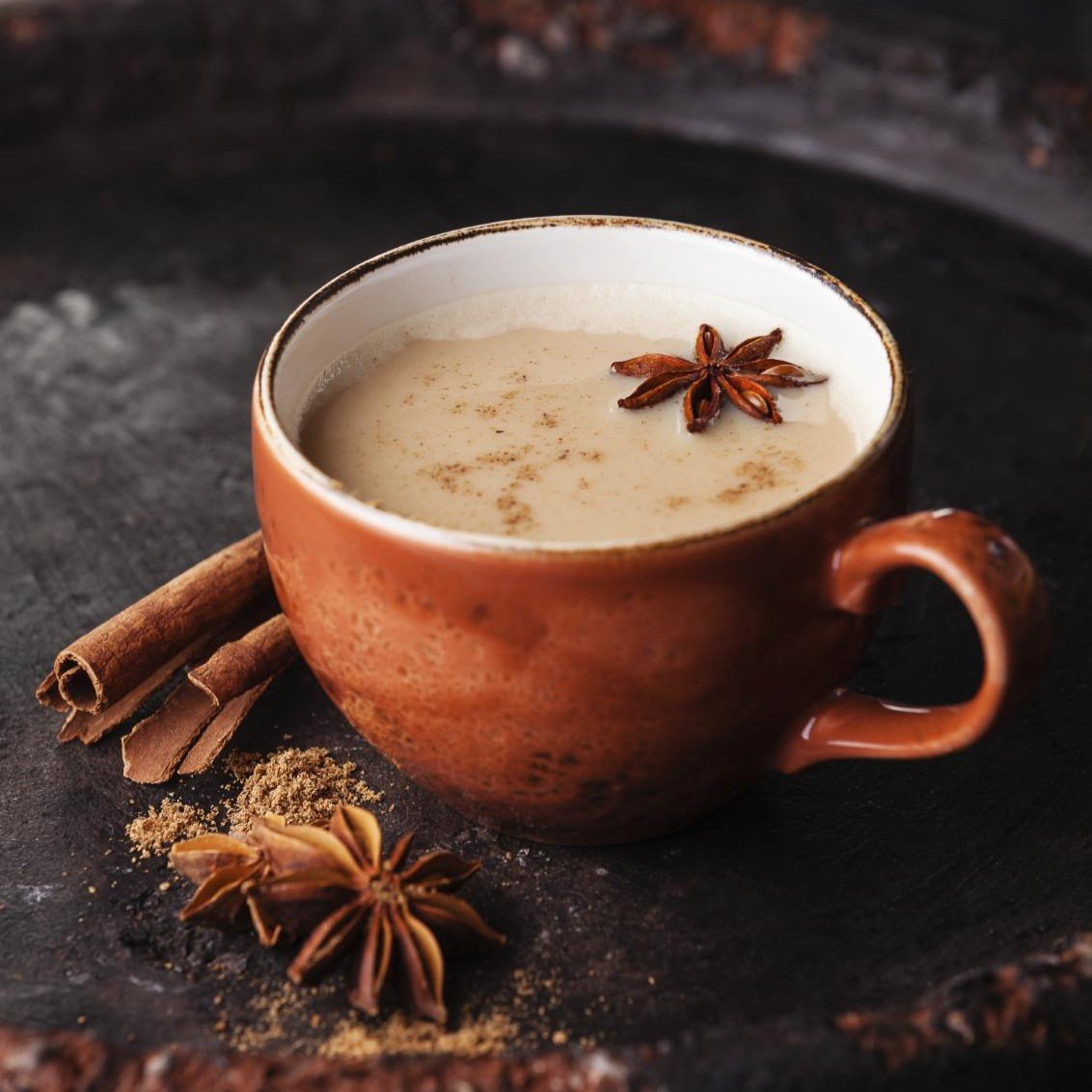 Traditional Indian tea brewed with aromatic spices and milk for a strong.