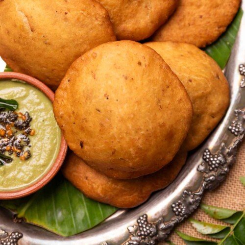 Crispy, golden fritters made with spiced mashed potatoes coated in gram flour batter.