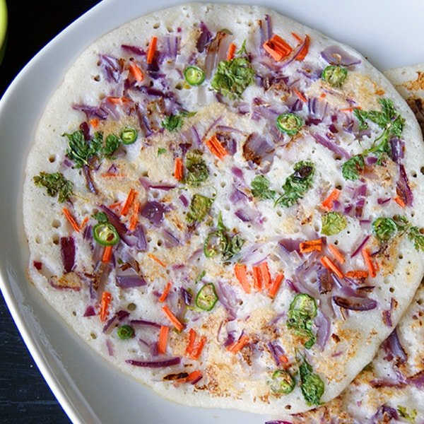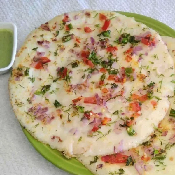 A thick, fluffy uttappam crowned with ripe tomatoes and subtle spices, slow-cooked to perfection.