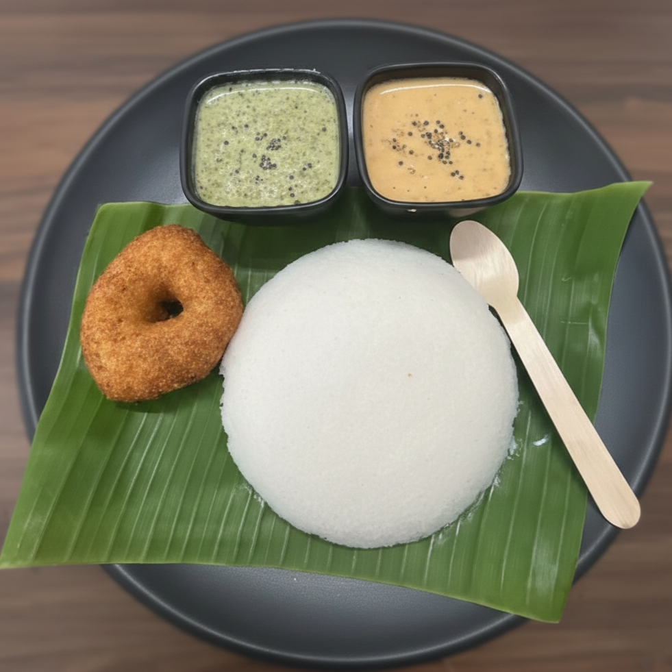 Soft, steamed idly paired with crunchy vada – the ultimate South Indian comfort combo.